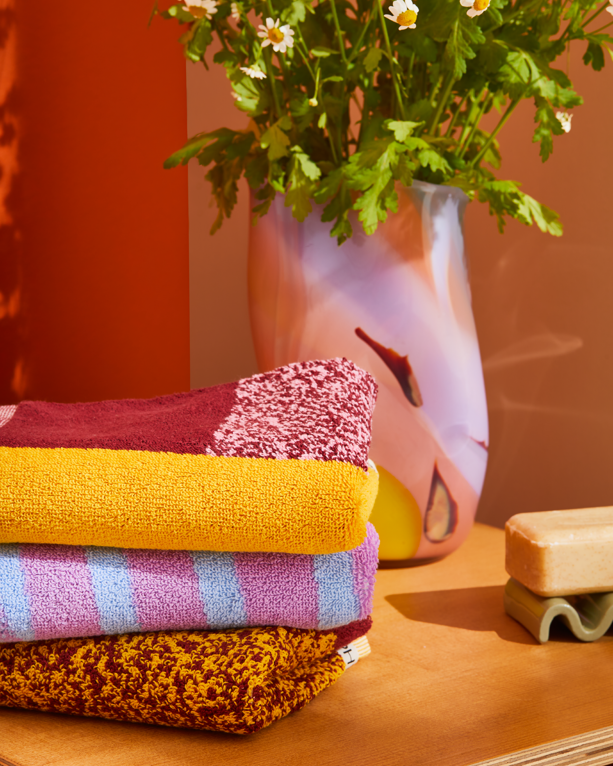 鮮やかな見た目からは創造できないやわらかな肌触りと、エコテックス®︎スタンダード100認証を取得した、安全面と環境面に配慮したタオルは随一です。