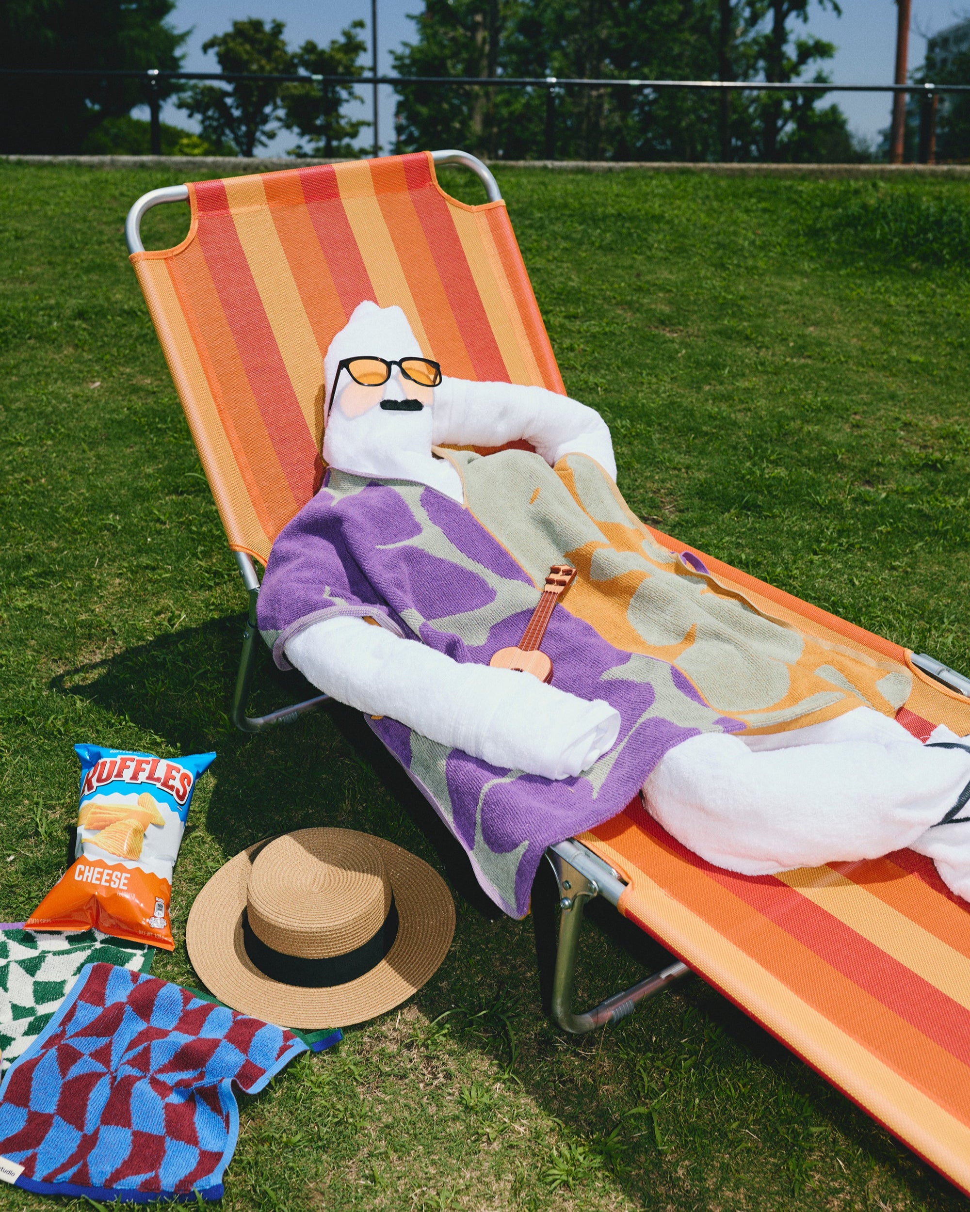 より日常的に使えるアイテムとを中心にラインナップを構成し、OPEN SESAME CLUBの得意とする独特なグラフィックをtowel.studioがニットタオルに落とし込みました。一般的なタオルの構成と違い、ニット機を使ってつくられるテクスチャーやアプローチが独特の風合いを造り出しています。