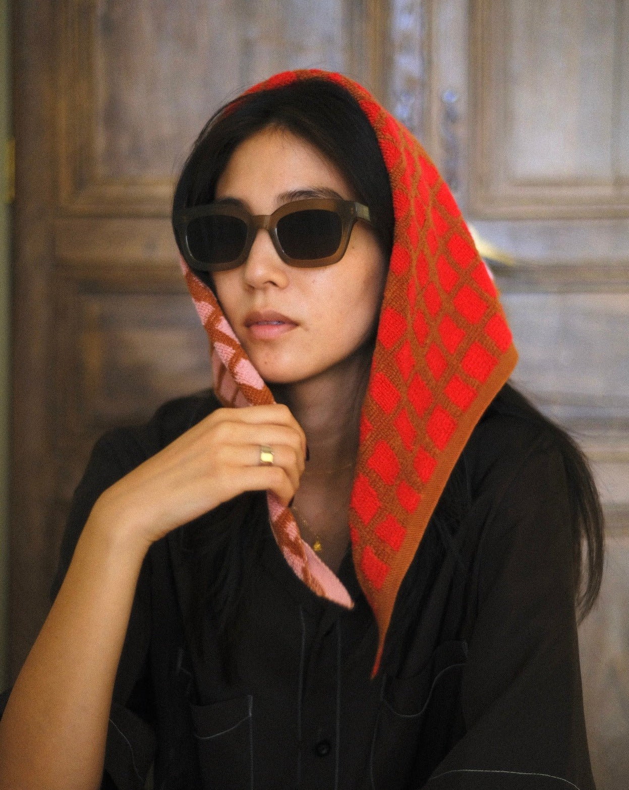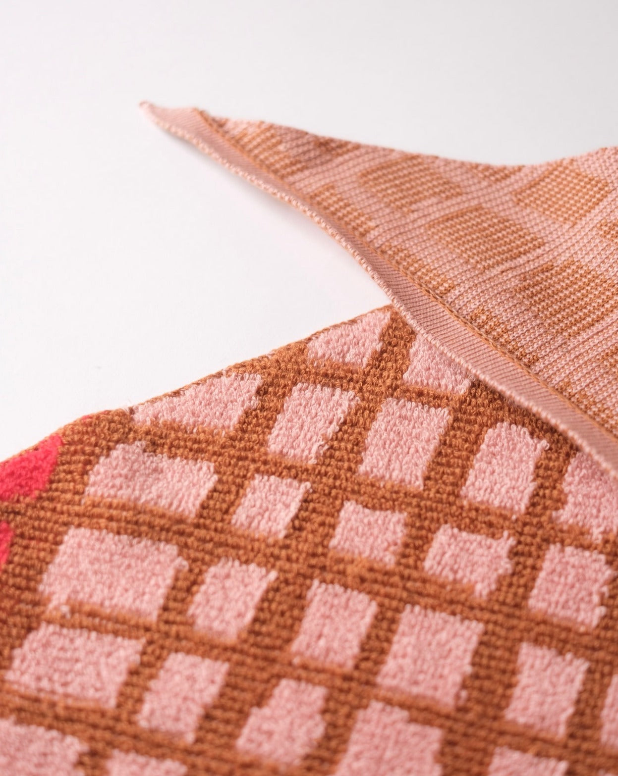 *販売終了* <towel.studio × aova> BOLD GRID SCARF TOWEL(Pomegranate)|トライアングルスカーフタオル