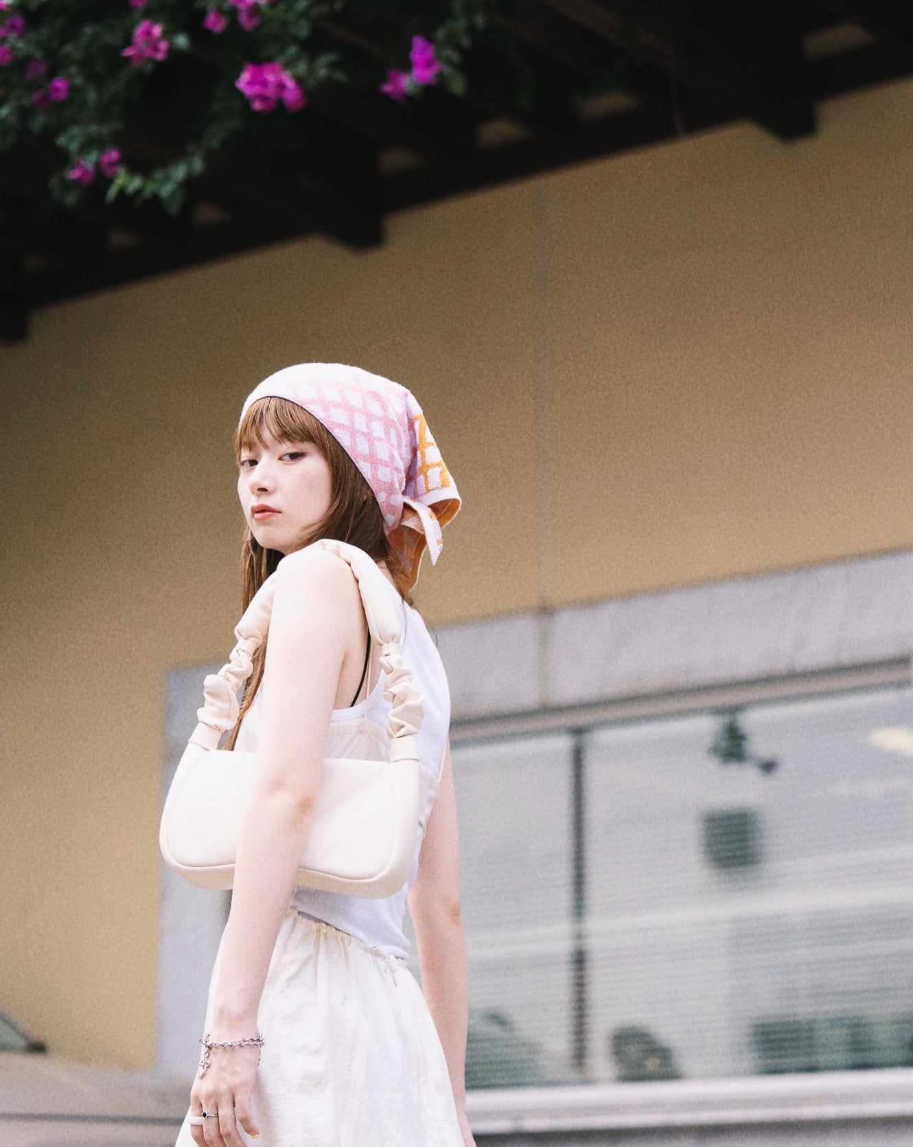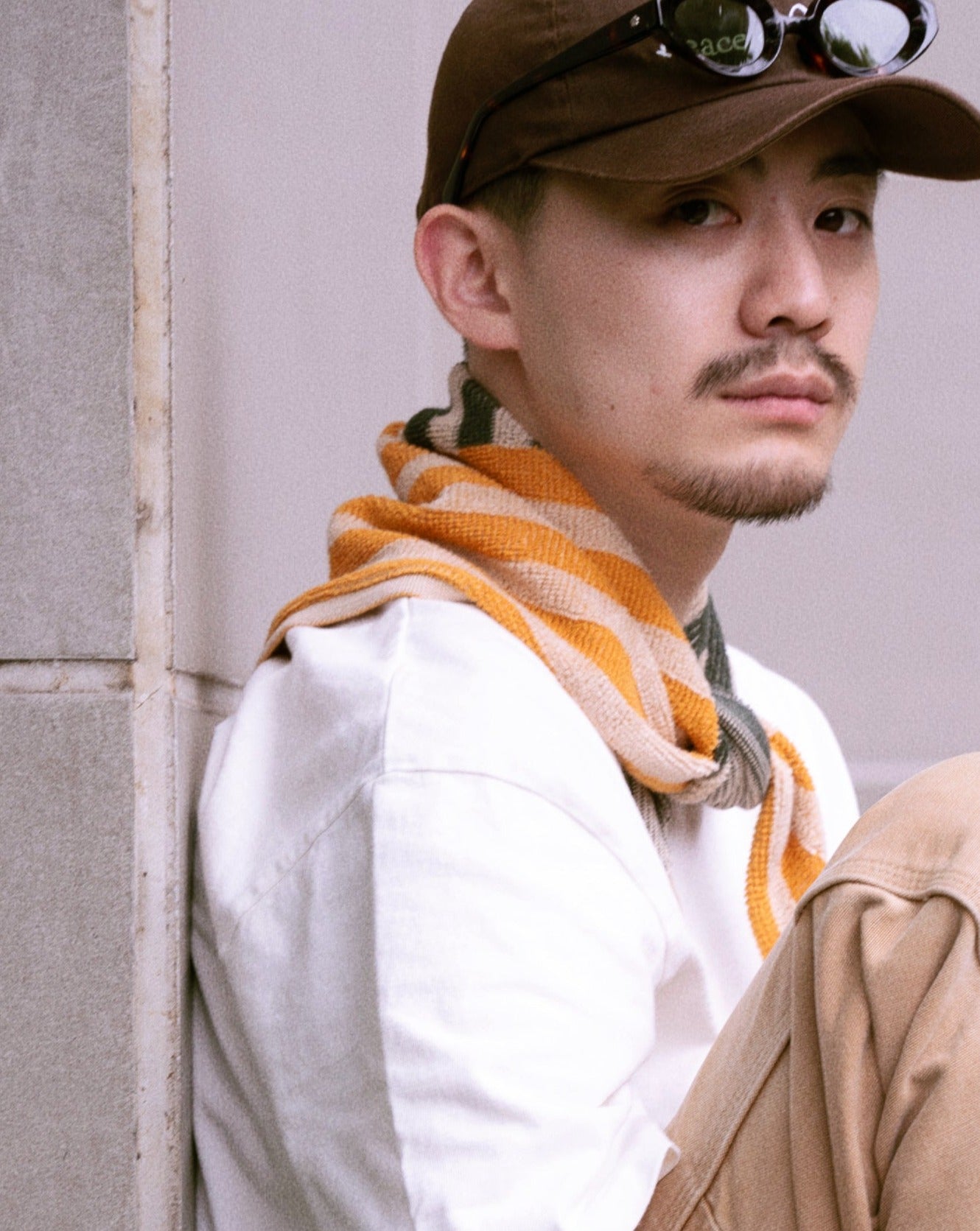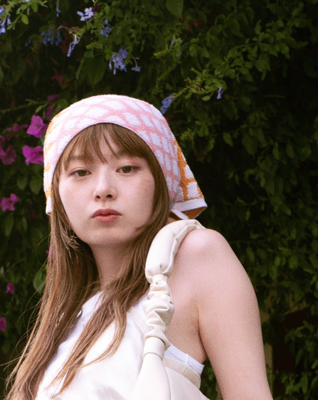 *販売終了* <towel.studio × aova> BOLD GRID SCARF TOWEL(Mirabelle)|トライアングルスカーフタオル