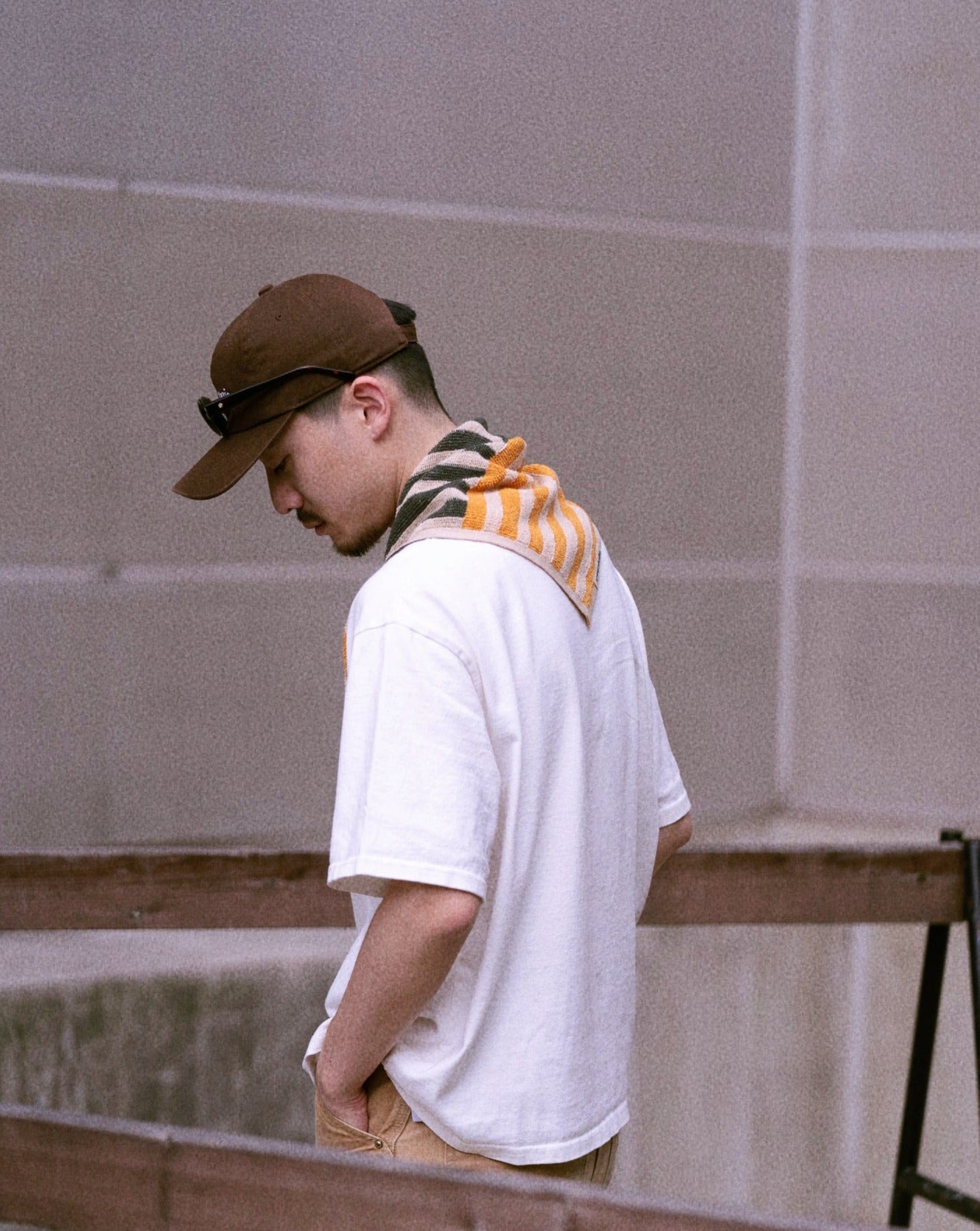*販売終了* <towel.studio × aova> BOLD GRID POCKET TOWEL(Nougat)|ポケットタオル