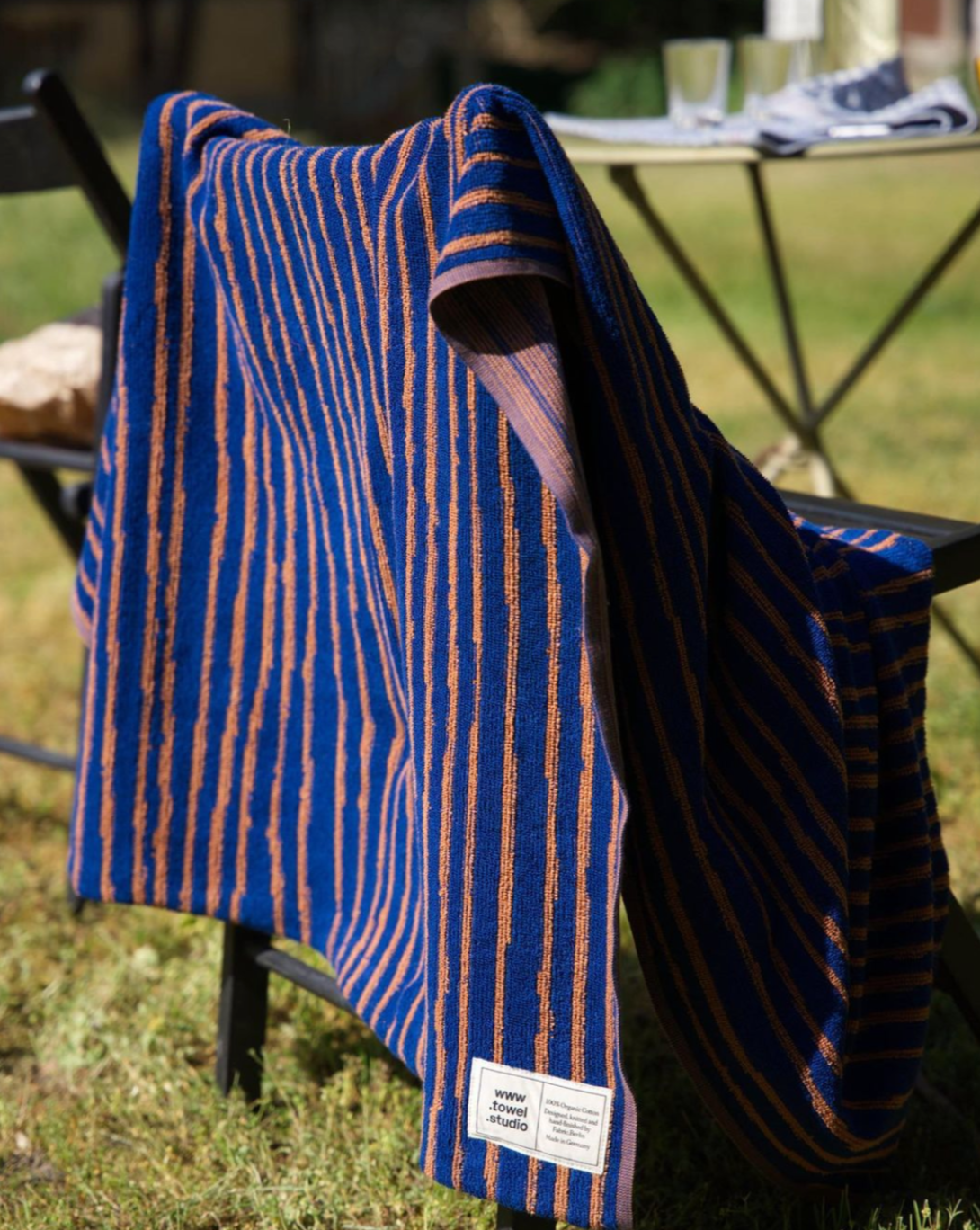 STRIPE BATH TOWEL (Azure & Chestnut) | Bath towel